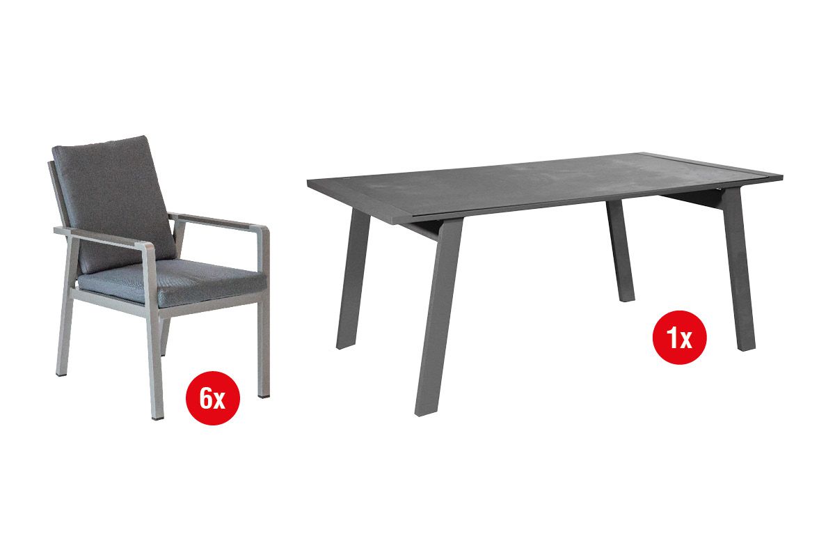 Gartengarnitur Lissabon 7-teilig - Farbe: graualuminium