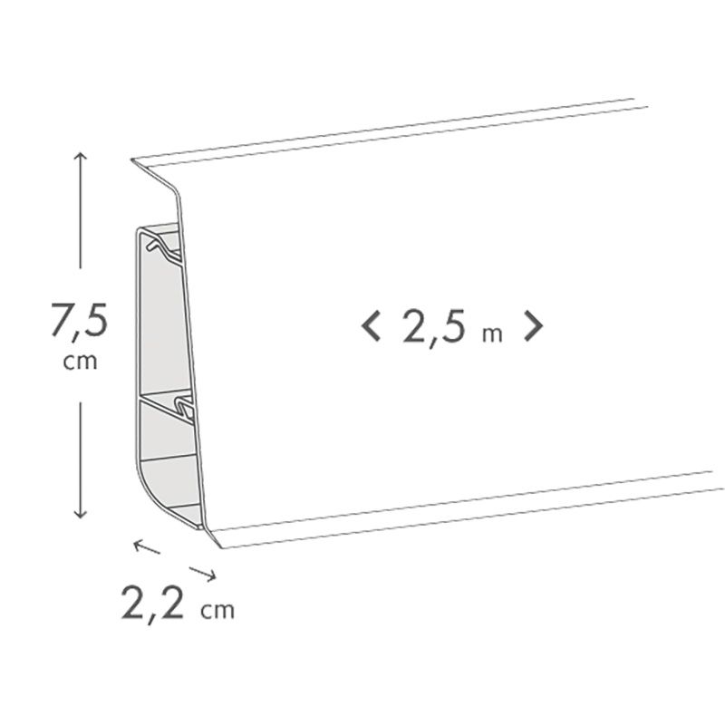 Sockelleiste Prestige - Farbe: hellgrau meliert, Länge: 2500 mm, Höhe: 75 mm, Tiefe: 22 mm