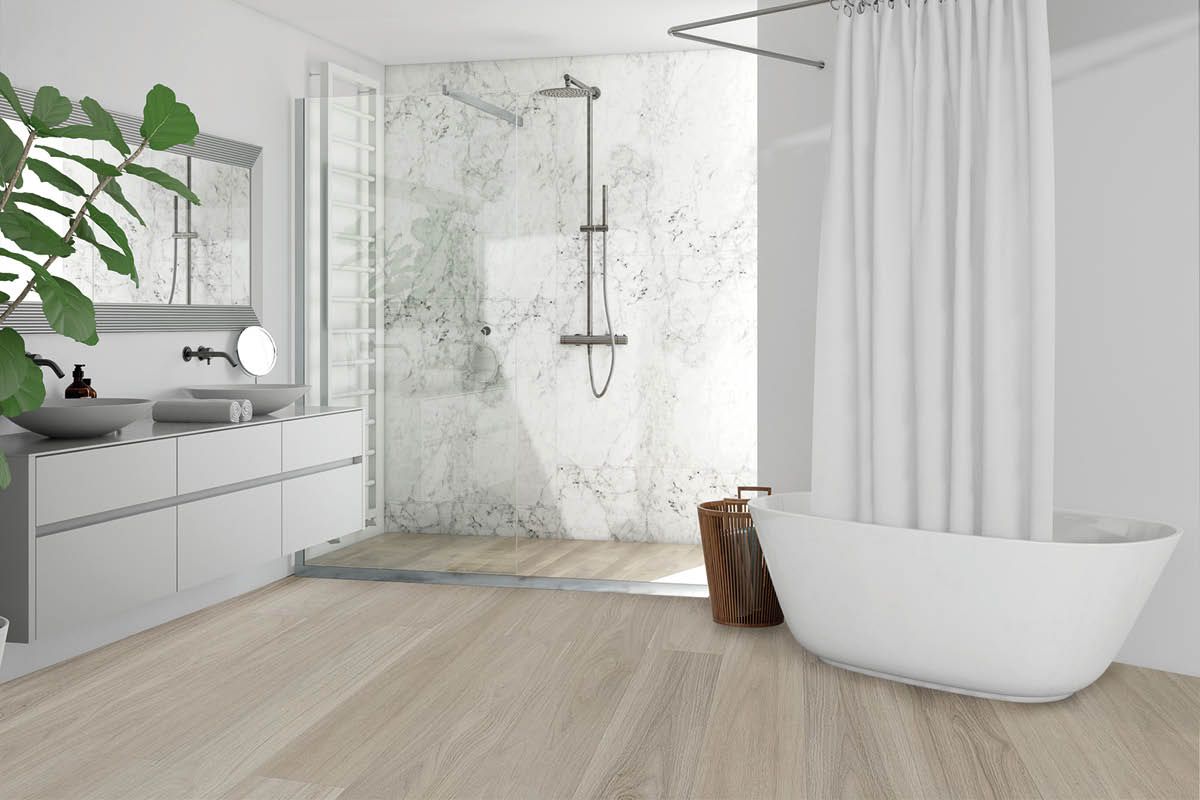 Der Vinylboden Loose-Lay ist ein selbstliegender, lose verlegbarer Bodenbelag der sich perfekt für Renovierungen, als auch für Neubauten eignet. Sie können den Loose-Lay Vinylboden, dank selbstliegenden Eigenschaften schnell und klebstofffrei verlegen. Der Vinylboden besitzt ein hohes Eigengewicht und wird bei der losen Verlegung Stoß-auf-Stoß auf den ebenen Untergrund gelegt. Die unkomplizierte Verlegung macht es möglich, einzelne Vinyl-Dielen des Designbodens bei Bedarf zu entnehmen und zu reinigen oder bei Beschädigungen zu tauschen. Es ist ausreichend den Boden am Rand auf den Untergrund zu kleben, optional kann er auch vollflächig verklebt werden. Bei vollflächiger Verklebung eignet sich dieser Boden auch perfekt für Badezimmer und Toiletten. Da der Vinylboden wärmer ist als Fliesen, erfreut er sich dort immer größerer Beliebtheit.