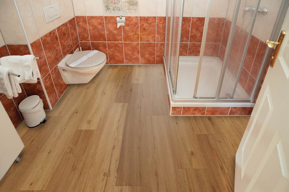 Der Vinylboden Loose-Lay ist ein selbstliegender, lose verlegbarer Bodenbelag der sich perfekt für Renovierungen, als auch für Neubauten eignet. Sie können den Loose-Lay Vinylboden, dank selbstliegenden Eigenschaften schnell und klebstofffrei verlegen. Der Vinylboden besitzt ein hohes Eigengewicht und wird bei der losen Verlegung Stoß-auf-Stoß auf den ebenen Untergrund gelegt. Die unkomplizierte Verlegung macht es möglich, einzelne Vinyl-Dielen des Designbodens bei Bedarf zu entnehmen und zu reinigen oder bei Beschädigungen zu tauschen. Es ist ausreichend den Boden am Rand auf den Untergrund zu kleben, optional kann er auch vollflächig verklebt werden. Bei vollflächiger Verklebung eignet sich dieser Boden auch perfekt für Badezimmer und Toiletten. Da der Vinylboden wärmer ist als Fliesen, erfreut er sich dort immer größerer Beliebtheit.