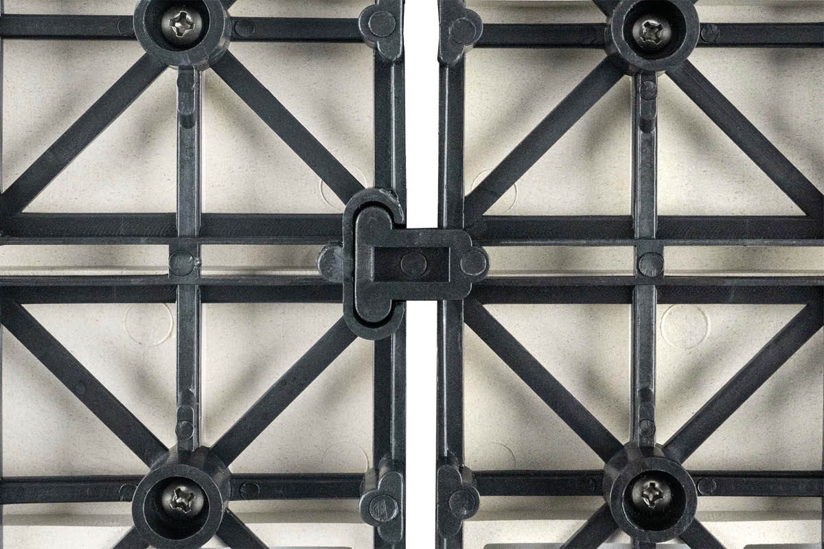 - Mit dem beliebten Klicksystem ist das Verlegen der Fliesen einfach und es werden weder Werkzeug noch Schrauben benötigt.